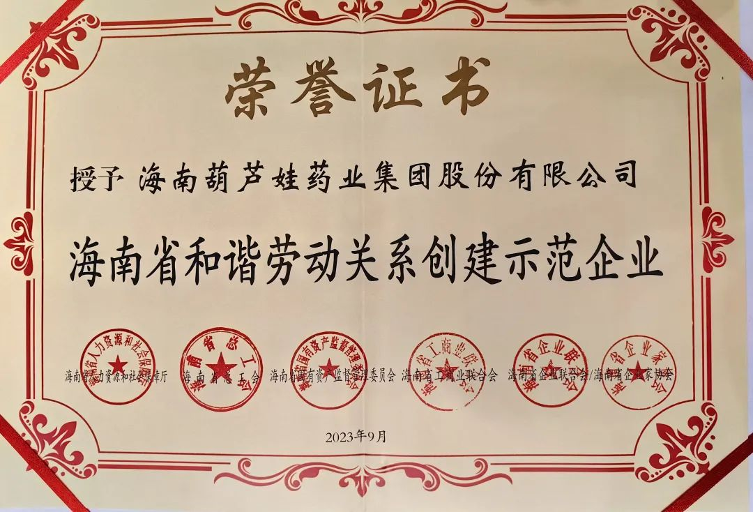 bifa必发药业集团获评“海南省和谐劳动关系创建示范企业”